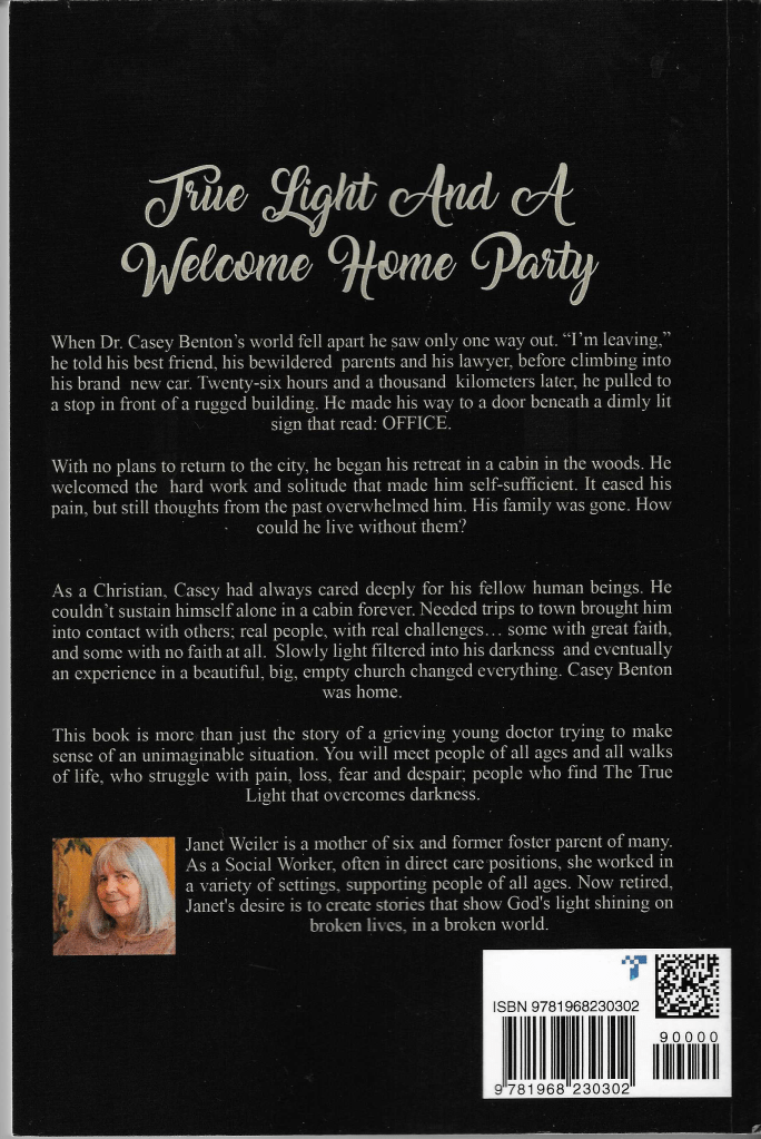 Finally some news for you… sometimes things take a little more time than we want them to. Today, as promised just two days ago, Amazon delivered copies of True Light and a Welcome Home Party, and A Safe Place to Run to. I really doubted that they would arrive so quickly… they are print on demand, and I believe through a purchase on Amazon.ca they are the first off the press of each book. They are printed in Canada.